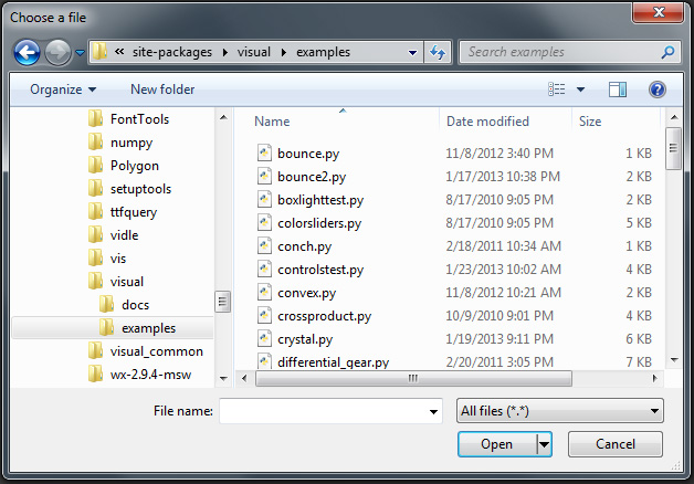 The options discussed below are available in Web VPython only. In Python with the vpython package, use the standard Python file and import methods.